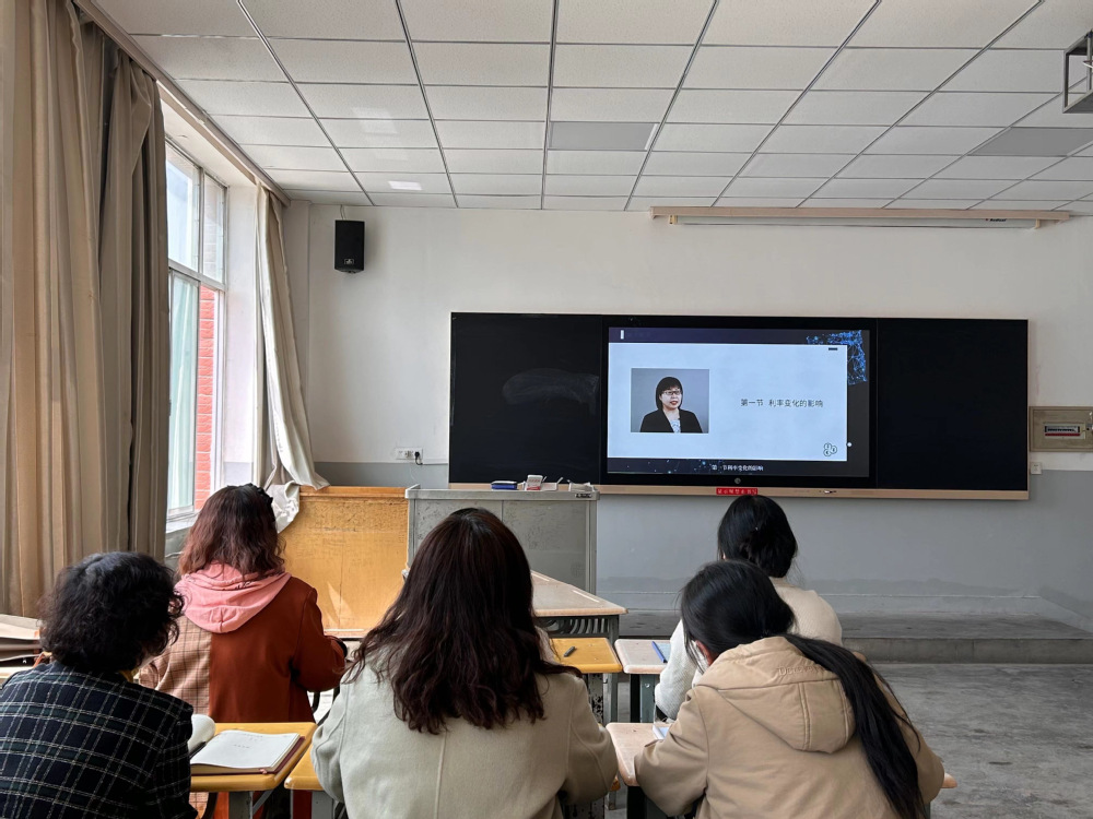 曾格格老师现场示范教学,教研室成有针对性的对曾格格老师教学内容进行讨论并反馈听课意见和建议;老师们现场学习了对外经济贸易大学何丽芬老师《金融市场学》慕课中影响利率的因素及可贷资金利率理论部分的视频课程,并进行了热烈讨论。