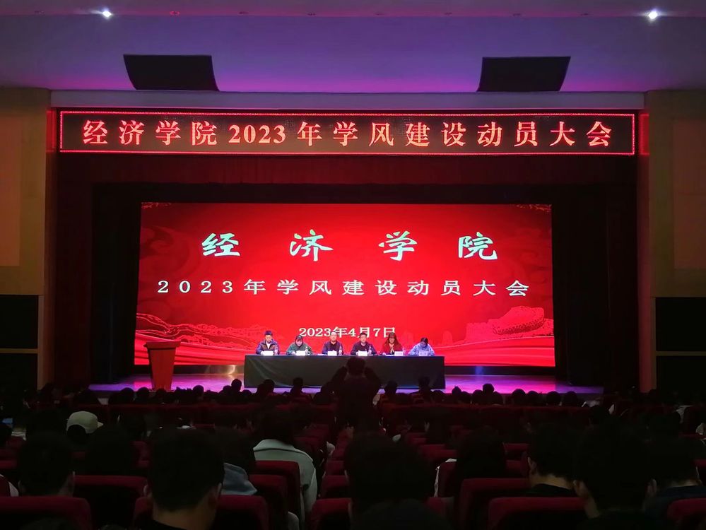会上,院长助理王红娟宣读了《经济学院学风建设实施方案》,对学风建设重点任务、具体措施及要求等进行了全面阐述和部署。接着,学生代表伍豆豆同学宣读了经济学院学风建设倡议书,号召同学们遵规守纪、励志勤学,创建优良学风,不断砥砺前行,不负青春韶华,以知识浇灌岁月,以学习充实青春,以良好精神风貌彰显经济学子的风采。最后,院长秦勇结合学风建设作了动员讲话,他就学院的学风建设谈了四点意见:一是充分认识加强学风建设的重要意义;二是坚决落实加强学风建设的举措办法;三是正视学院学风建设存在的主要问题;四是努力实现学院学风建设的发展再上新台阶。同时,他对全院学生提出了四点要求:一是端正学习态度,明确学习目标,做好学业与职业生涯规划;二是学生党员、学生干部起到学风建设模范带头作用;三是充分发挥班集体在学风建设中的重要作用;四是扎实课程学习,积极参与创新创业活动。