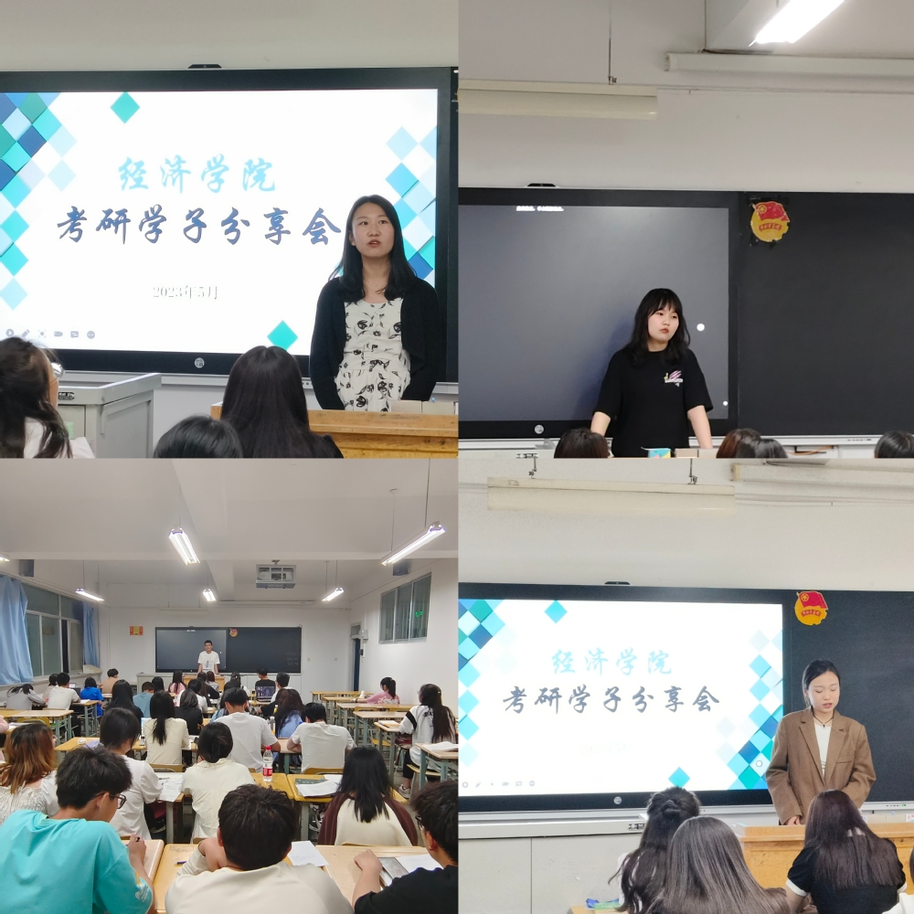 为进一步加强学生对考研知识的了解,促进学生的学习热情和考研激情,518日至522日晚,经济学院在明辨楼各教室举行2023届考研录取学生考研经验交流分享会。经济学院2023届考研上岸学生代表李玲珑、许帆、刘永琰、赵佳宁担任主讲,全体2022级、2021级学生参加了此次分享会。