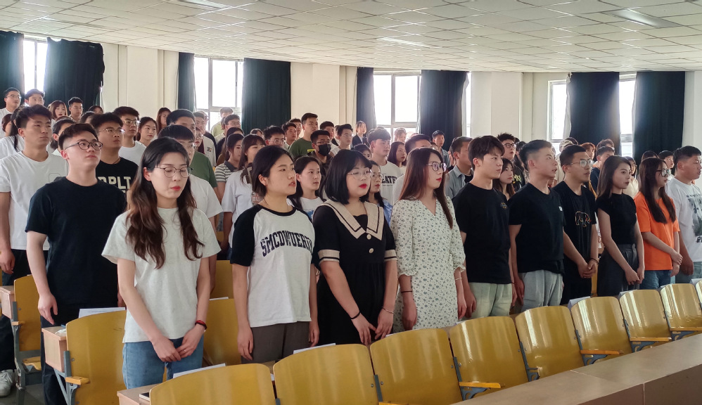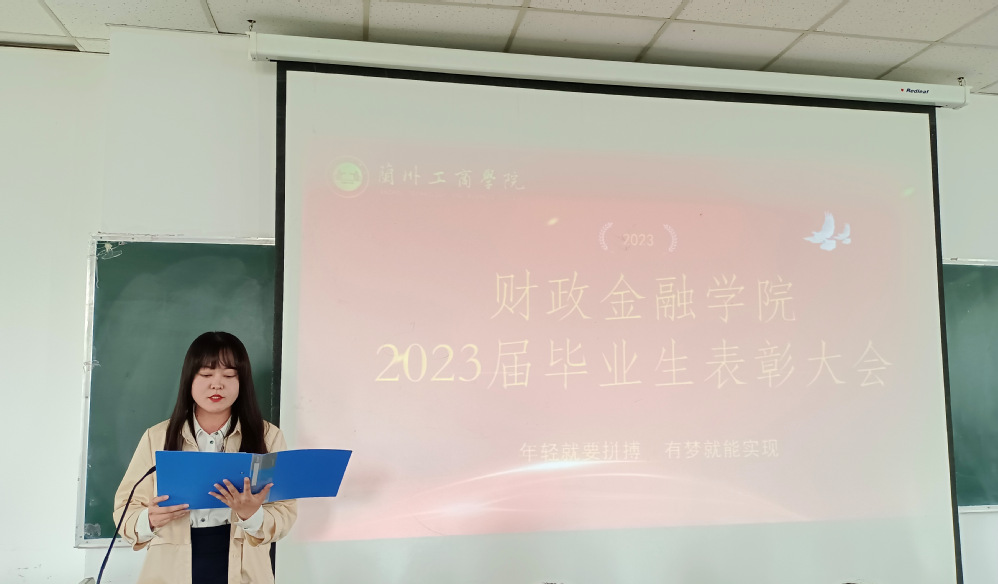 近年来,学院以习近平新时代中国特色社会主义思想为指导,紧紧围绕重点工作,通过推进“三抓三促”行动,立足学风建设系列活动,取得了良好的效果。特别是2019 级学生在抗击新冠疫情、推进学院校园文化建设等工作中做出了突出贡献,为表彰先进,树立典型,引导毕业生们向榜样学习,在新的学习、工作岗位上勇毅前行,再创佳绩。2023年5月23日下午四点,财政金融学院2023届优秀毕业生表彰大会在善问楼2-315举行。学院领导班子、2023届优秀毕业生代表以及在校生代表出席本次会议,大会由陆海峰老师主持。大会在庄严肃穆的国歌声中拉开帷幕。