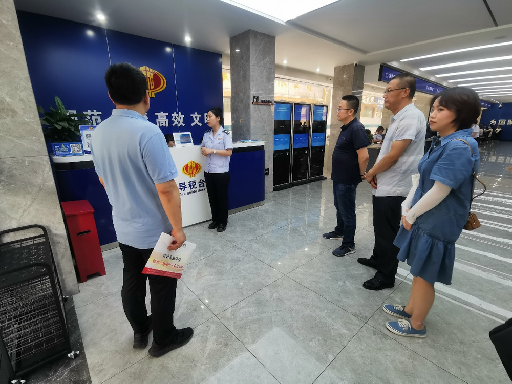 在调研过程中,国税局工作人员对当前的人脸识别、大数据、云桌面、智能导税、双屏互动等先进技术的智慧办税系统进行详细介绍。