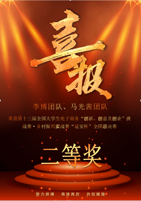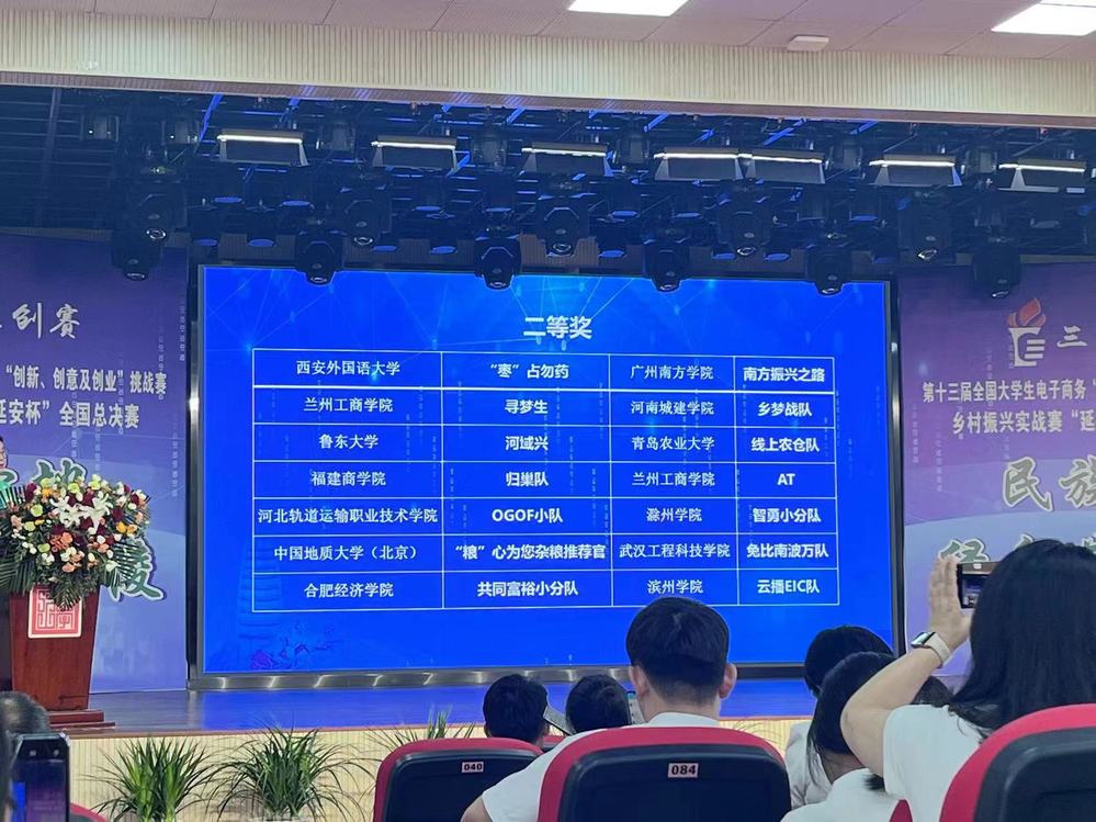 7月26日至27日,第十三届全国大学生电子商务“创新、创意及创业”挑战赛·乡村振兴实战赛“延安杯”全国总决赛(以下简称“三创赛”)在黄陵县桥山中学举办,来自全国119所院校135支参赛队伍600余人历经校赛、省赛齐聚黄陵。经过激烈角逐,由我院梁磊、刘子泰老师指导,金融学2104班李博等同学的项目《玉满天下——镇平玉雕推广与创新》、由刘子泰老师指导,财政学2101班马光茜等同学的项目《植白之心——瓜子撑起乡村振兴的一片天》均斩获国家级二等奖。这是我校学生首次在“三创赛”实战赛道获得国家级奖项。