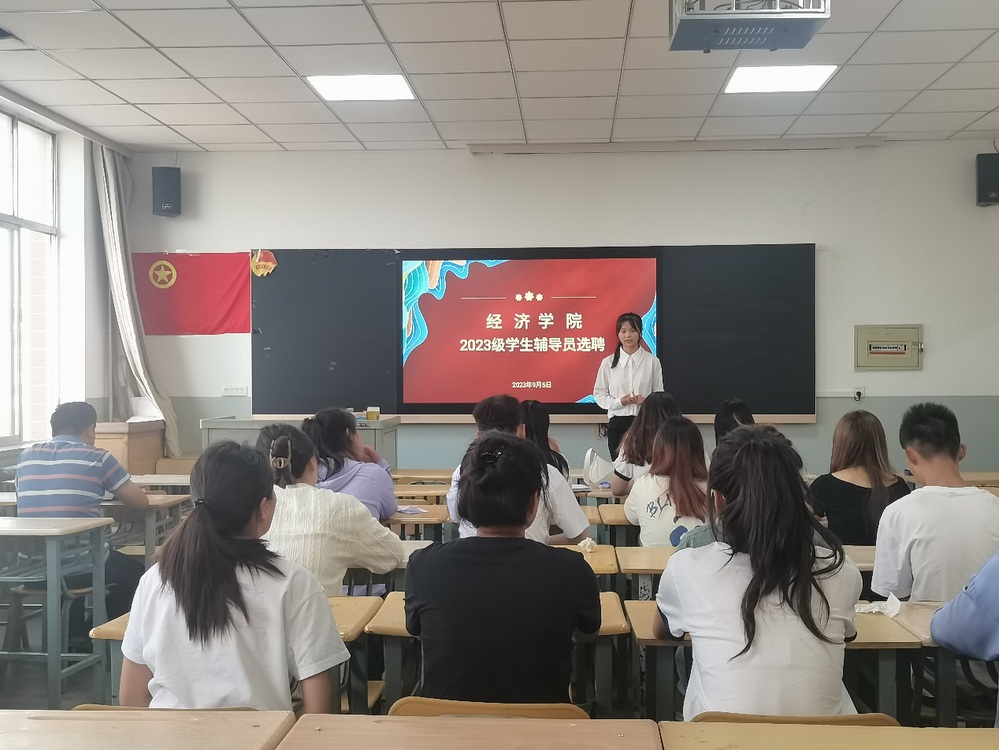 为顺利推进2023级新生入学前后各项工作有序进行,发挥朋辈引领作用,引导新生更快地适应大学生活,9月5日下午,经济学院在善问楼410教室开展了2023级学生辅导员选聘面试工作,学院行政院长秦勇出席、2023级辅导员参加,面试由党委书记周欣主持。