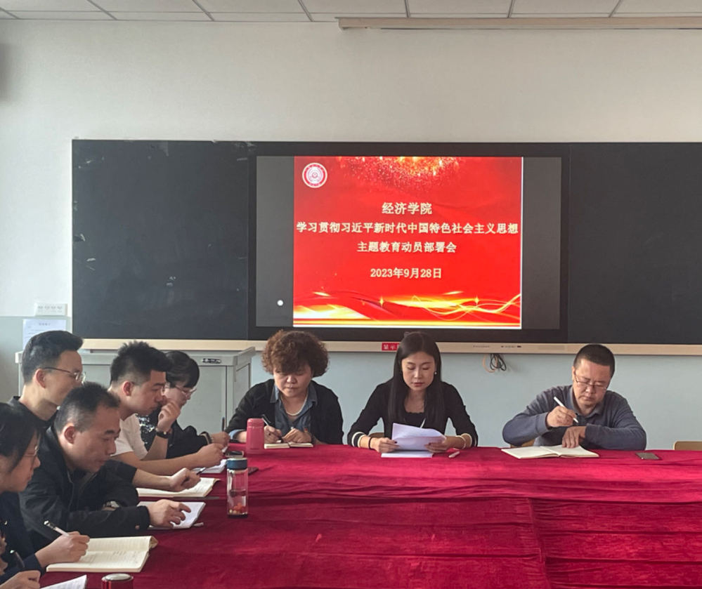 为深入学习贯彻习近平总书记关于主题教育系列重要讲话精神和重要指示批示精神,落实学校主题教育工作会议精神,经济学院党委于9月28日下午在1-410教室召开了学习贯彻习近平新时代中国特色社会主义思想主题教育动员部署会。会议由党委书记周欣主持,全体教工党员参加。