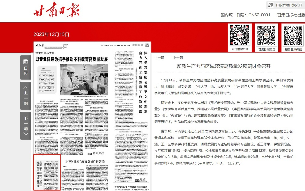 12月14日,新质生产力与区域经济高质量发展研讨会在兰州工商学院召开。来自省教育厅、省社科联、省文史馆、兰州大学、西北民族大学、兰州财经大学、甘肃政法大学、兰州城市学院等相关单位和高等院校的众多代表参加了研讨会。