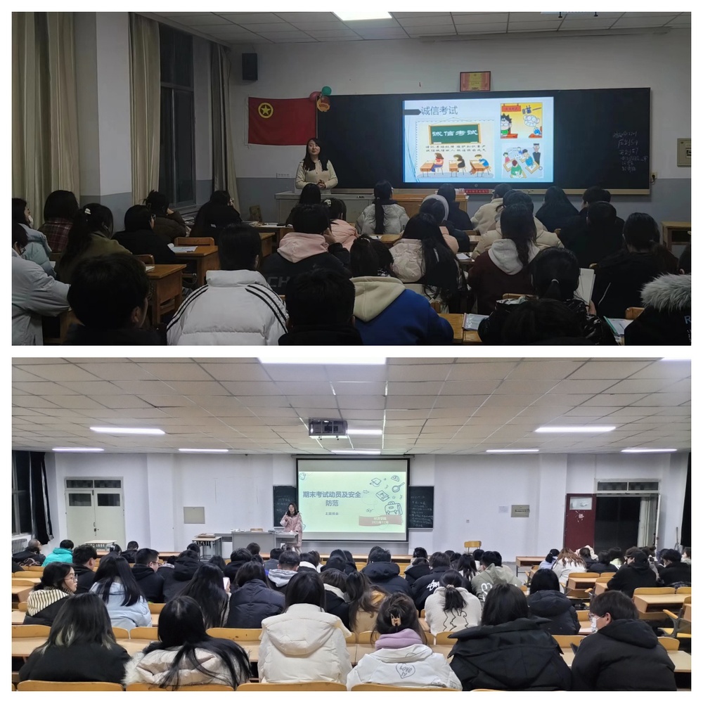 会上,辅导员老师强调,同学们要端正学习态度、重视期末考试,全身心投入期末复习,合理安排复习时间、认真复习、充分准备、诚信考试、避免挂科;号召同学们进一步增强竞争意识,争分夺秒,形成你追我赶的学习风气,并强调同学们要确立自己的目标,做好个人学业职业规划。