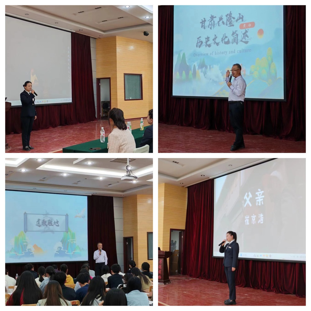 活动现场,首先同学们集体观看了电影记录片《星火》,聆听了讲解员讲述红色故事《一本不用寻常的医书》、《陌生的父亲》,讲述张一悟的生平事迹,了解到张一悟等老一辈共产党人将马克思主义火种传播到陇原大地的艰苦历程,切身体会到革命先辈们建设兰州、建设西北的艰辛。接着,由兴隆山管护中心生态旅游科科长黄伟为大家带来精彩的演讲,带领大家观看了兴隆山历史文化的介绍视频,他生动详细地从自然资源、著名景点、红色旅游、道教名人等方面做了讲解。兴隆山秀丽的自然风光,让同学们留恋其中;深厚的文化底蕴,让同学们沉浸其中;古代文人墨客挥毫泼墨,让同学们心生赞叹,全体在场师生全神贯注,认真聆听,对兴隆山的悠久历史文化底蕴和光荣革命传统有了更深厚的认识和感悟,也进一步激发了大家对家乡文化遗产的热爱与珍视。