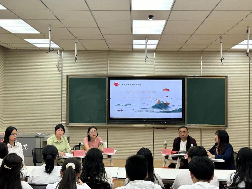 为提升经济学院学风建设成效,增进师生之间的交流,开拓学生对专业学的视野,经济学院于2024年4月28日下午,在学校录播教室举办了第1期“我与老师面对面”主题的沙龙活动。经济学院教学副院长李互武老师、经济统计学专业窦建军老师、经济与金融专业吴金红老师、信用管理专业韩宇滢老师、国际经济与贸易专业王育琴老师以及32名优秀学生代表参加本次活动。