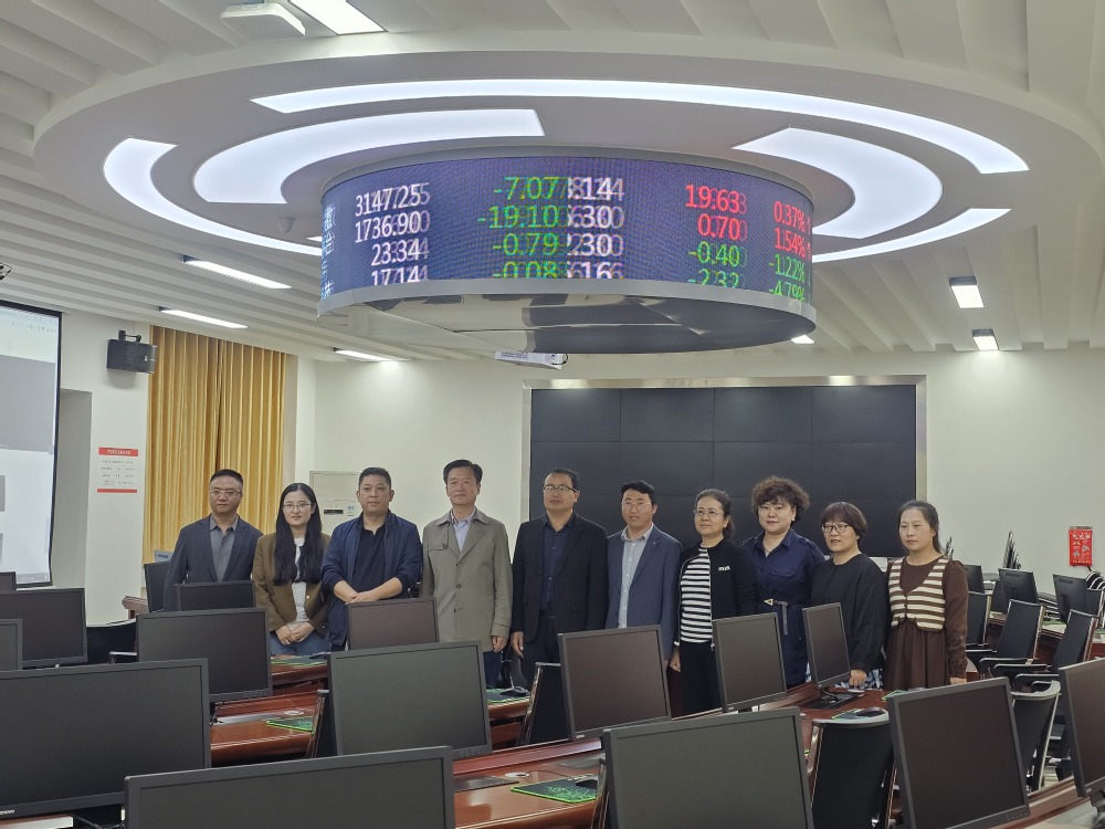 一行人在西北民族大学经济学院党委书记韦玉成、院长马海涯教授、副院长王超教授、实验室主任徐菁教授、办公室主任苏秀洁老师的陪同下,参观了该学院的新金融智慧学习工场下的金融综合实验室、国际贸易与物流实验室、电子商务实验室。