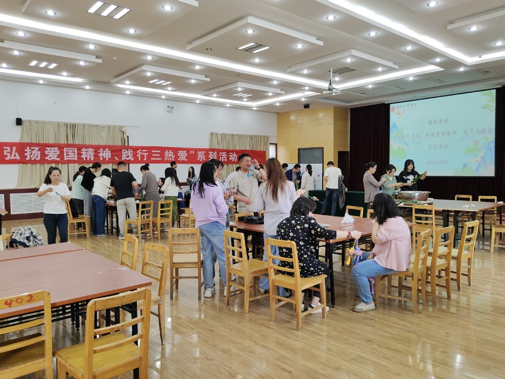 仲夏时节,粽叶飘香, 为进一步弘扬我国传统文化,继承传统习俗,彰显民俗文化魅力,增强教职工凝聚力。6月6日下午,经济学院举办了 “传承端午文化,弘扬爱国精神,践行三热爱”系列活动。学院领导班子及全体教职工参加了本次活动。