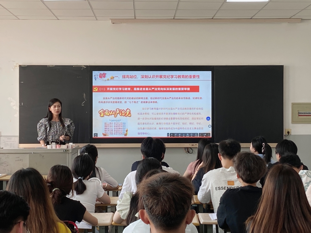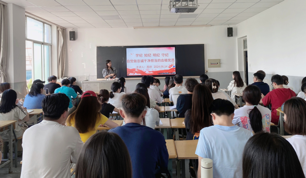 为深入贯彻落实习近平总书记关于党纪学习教育的重要讲话精神和重要指示精神,进一步深化对《中国共产党纪律处分条例》的学习,推动党纪学习教育入脑人心,教育引导广大学生党员提升党性修养、增强纪律意识、践行服务宗旨、强化责任担当,6月14日下午,学院党委书记周欣以《学纪、知纪、明纪、守纪,自觉做忠诚干净担当的合格党员》为题,为学生党员讲党纪学习教育专题党课。
