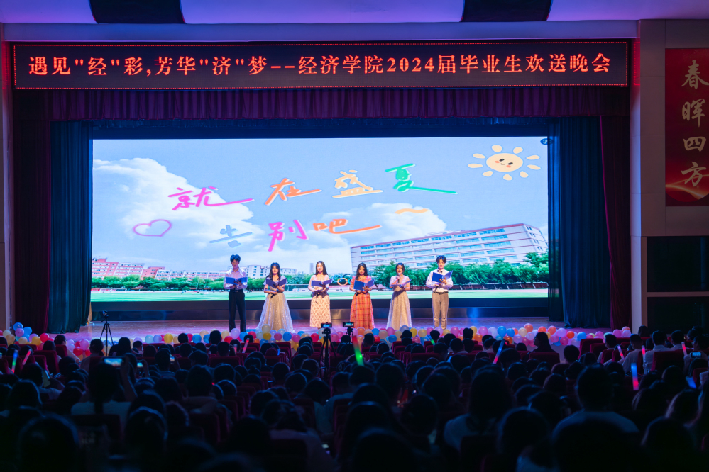 时光留“夏”,青衿相携。6月18日晚,经济学院“遇见‘经’彩,芳华‘济’梦”欢送2024届毕业生文艺晚会在学术报告厅举办。学院领导、老师、2024届毕业生及家长代表观看本次晚会,共同见证这难忘的时刻。