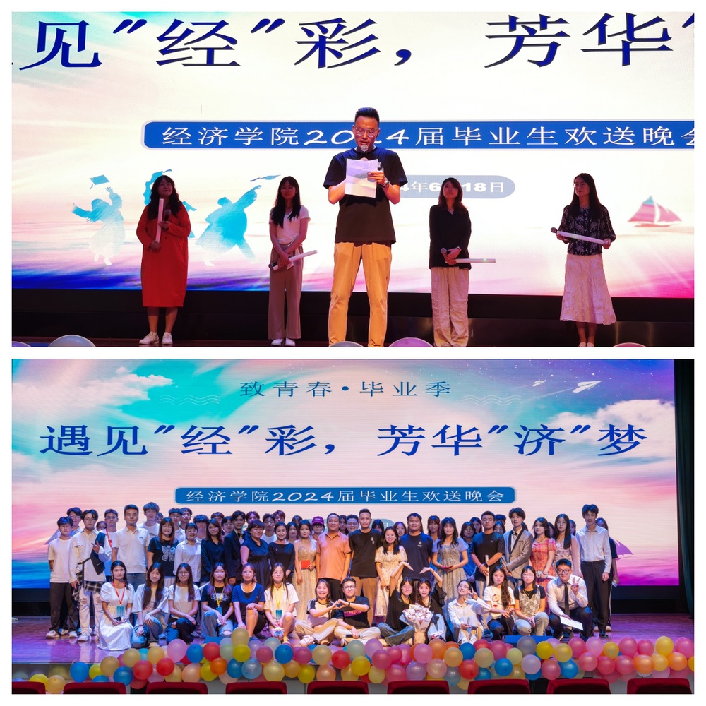 本次晚会不仅让毕业生再次感受到经济学院这个大家庭的温暖,进一步深化了母校情、师生情和同学情,同时也表达了学院对2024届全体毕业生的美好祝愿。祝愿经济学院的毕业生们带着母校的祝福、学院的期望,在离别母校、踏入社会这个更广阔的天地后畅快翱翔、振翅高飞,在未来的人生道路上乘风破浪、续写辉煌!