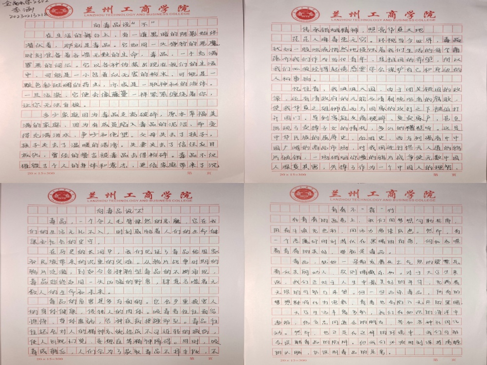 为深入贯彻落实国家禁毒政策,提高广大同学的禁毒意识,经济学院面向全院学生组织开展了禁毒主题征文活动。
