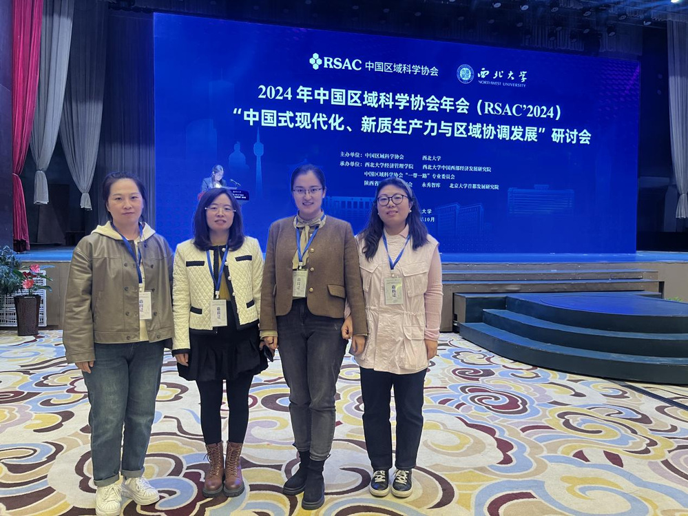 2024年10月26-27日,2024年中国区域科学协会年会在陕西省西安市西北大学隆重召开。会议以中国式现代化、新质生产力与区域协调发展为主题,团结学术界力量服务中国式现代化建设。经济学院李小艳、何颖、陶鹤、董楠楠四位老师参加此次会议。