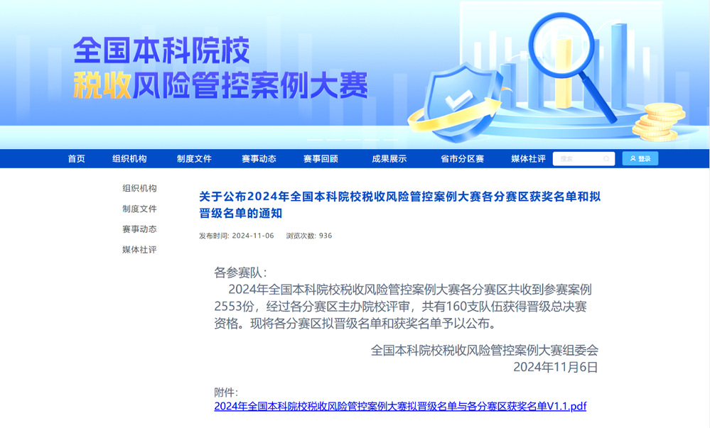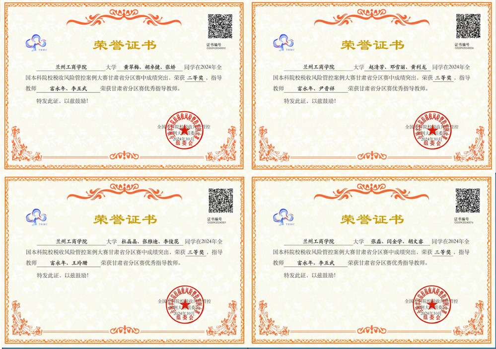 2024年11月2日,在刚刚结束的2024年全国本科院校税收风险管控案例大赛甘肃省分赛区中,我院财政学专业的学生团队表现出色,荣获二等奖一项和三等奖三项的佳绩。