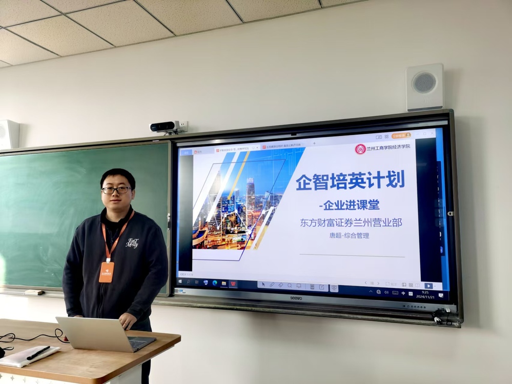 经济学院于2024年11月22日在综合教学楼B707成功举办了“企智培英”系列活动之“深化校企合作,共育金融人才”主题讲座,特邀东方财富证券兰州营业部唐超先生作为主讲人,为学生们带来了一场关于金融市场趋势和证券行业职业发展的专题讲座。此次活动旨在深化校企合作,提升学生对金融市场的理解和实践能力。