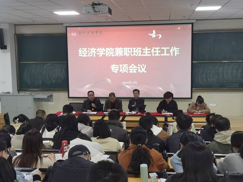 为进一步加强队伍建设,明确兼职班主任工作内容,提升兼职班主任工作效果,充分发挥兼职班主任的作用,11月21日下午,经济学院在综合教学楼C504召开兼职班主任工作会议。学院领导班子、辅导员及兼职班主任参加会议。会议由行政院长秦勇主持。