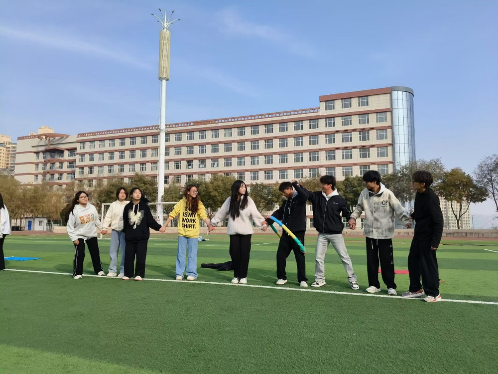 活动当日,晨曦微露,同学们便已满怀热忱地齐聚操场,个个英姿飒爽、精神饱满,眼神中闪烁着对拓展活动的热切期待。在庄严而又振奋的氛围中,周欣发表了热情洋溢的开场致辞,她鼓励同学们勇于突破自我,在活动中尽情展现青春风采,深刻领悟团队合作的精髓。随后,活动负责人依据随机分组原则,将同学们巧妙地划分为四个充满活力与斗志的小队,正式拉开了一系列精彩项目的序幕。