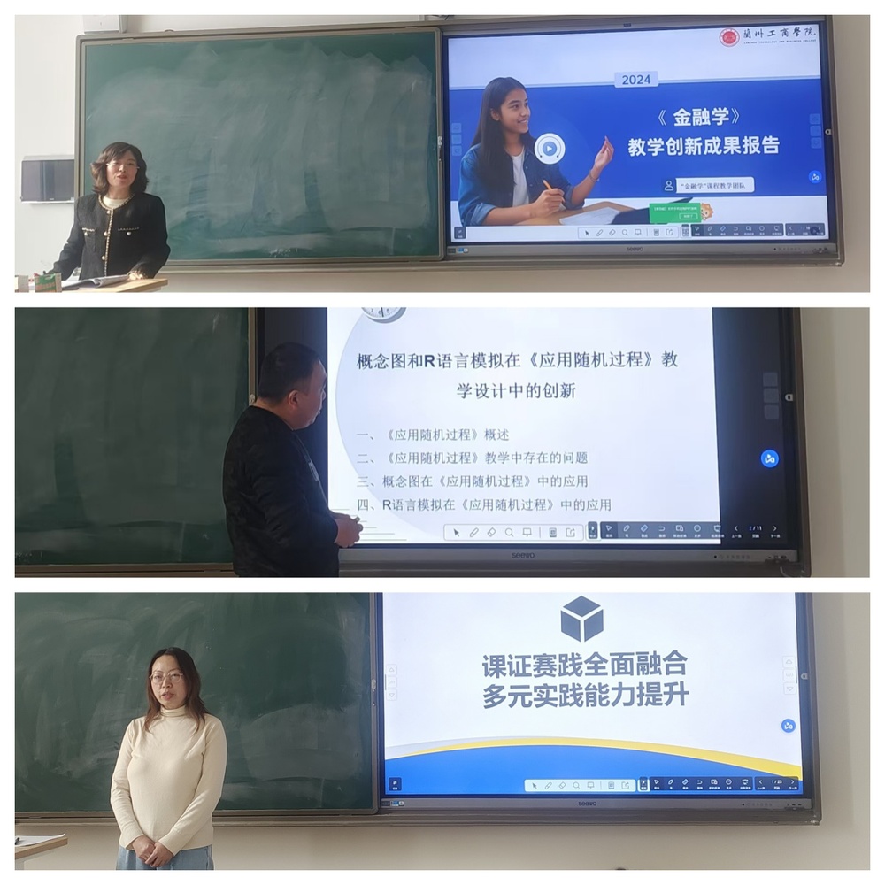 为保证比赛结果的公平公正,也为了能给参赛团队给予专业的指导,本次大赛特别邀请了甘肃政法大学公共管理学院院长张举国教授、西北师范大学经济学院石红莲教授和兰州财经大学马克思主义学院张静副教授担任评委。共有6个教学创新团队参加比赛,分别为金融与金融科技教研室何颖老师、金融与金融科技教研室杜丽蓉老师、经济统计教研室窦剑军老师、财政与保险教研室王玲珊老师、应用经济学教研室赵芳老师和投资与信用管理教研室史晓茹老师,涉及经济学院开设的6门专业课。