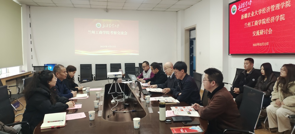 3月12日上午,在新疆农业大学经济管理学院,院长余国新、副院长夏咏及商贸系汪晶晶副教授、黄福江副教授参加座谈会。我校成功考入新疆农业大学经济管理学院继续深造的优秀毕业生也列席座谈会。座谈会上,余国新院长对我校一行的到来表示热烈欢迎,并简要介绍了经济管理学院的发展历程、学科建设、师资力量等基本情况。万永坤院长代表兰州工商学院一行对新疆农业大学经济管理学院的热情接待表示衷心感谢,并介绍了我校基本情况以及此次考察交流的目的和意义。他指出,新疆农业大学经济管理学院办学历史悠久,学科特色鲜明,在服务地方经济社会发展方面取得了显著成效。此次考察交流旨在学习借鉴经济管理学院在人才培养、学科建设、产学研融合、评估工作、学生管理等方面的先进经验和成功做法,进一步加强两院之间的交流与合作,实现资源共享、优势互补、互利共赢,共同为服务区域经济社会发展作出更大贡献。此外,因我校经济学院、管理学院有多名学生在新疆农业大学继续深造,万永坤院长就我校毕业生在新疆农业大学经济管理学院学习情况进行了解,并询问了经济管理学院招收硕士研究生招生的知识、能力要求,为我校对考研意向学生的重点培养提供方向。