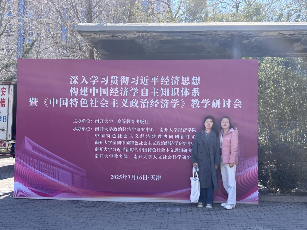3月16日,经济学院教师吴金红、朱婷赴南开大学,参加由南开大学、高等教育出版社共同主办的“深入学习贯彻习近平经济思想构建中国经济学自主知识体系”专题研讨会。本次会议聚焦于南开大学讲席教授逄锦聚领衔团队编写的马克思主义理论研究和建设工程重点教材《中国特色社会主义政治经济学》。该教材作为“中国系列”原创性教材体系的首批成果,经国家教材委员会审定,由高等教育出版社正式出版。