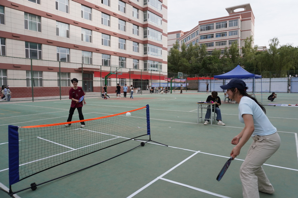“金融对冲 匹克攻防战”项目融合了网球、羽毛球和乒乓球的特点,节奏明快、趣味十足。每队2名队员在球场上灵活移动、巧妙击球,进行激烈对抗,锻炼了反应能力和身体灵活性。
