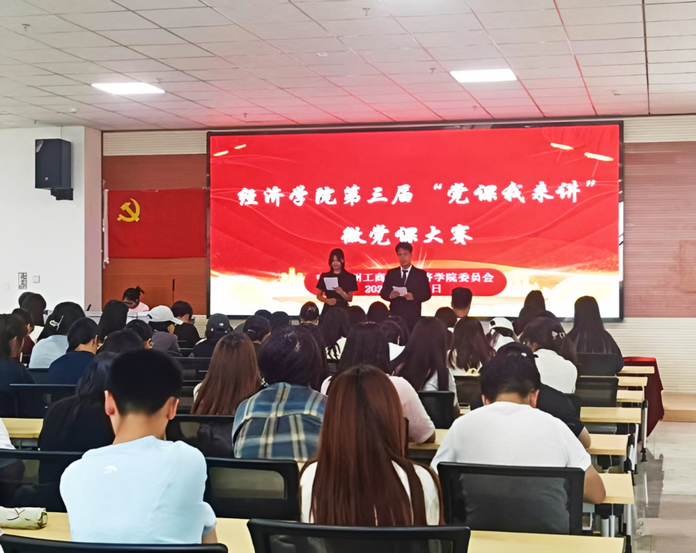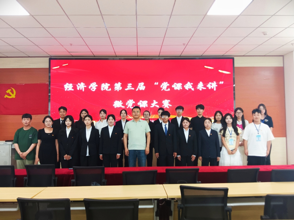 为深入学习贯彻习近平新时代中国特色社会主义思想,扎实推进党的创新理论入脑入心,经济学院于6月12日在综合楼C501举办了第三届“党课我来讲”微党课大赛,学院教师代表、各支部书记及党政秘书邓超老师担任评委,学生党员及入党积极分子在现场观摩学习。