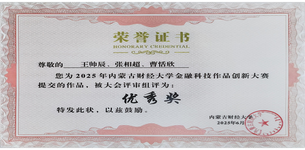 本次年会以“金融科技创新赋能中国式现代化”为主题,由中国技术经济学会金融科技专业委员会主办,内蒙古财经大学金融学院承办,涵盖主旨演讲、平行论坛、理事会扩大会议等环节。在融科技专业委员会理事会扩大会议上,经济学院4位教师作为兰州工商学院代表出席会议。教学院长胡瑜杰和金融科技专业负责人梁磊老师代表兰州工商学院在发言中介绍了我校金融科技专业在课程设置、人才培养模式创新等方面的探索。同时,经济学院胡瑜杰、王俊、梁磊老师指导学生参加的2025年内蒙古财经大学金融科技作品创新大赛荣获优秀奖,这也是对我校金融科技专业人才培养成果的肯定。此外,经济学院教师赴阴山优麦公司进行企业考察,就金融科技人才培养、产学研合作等话题展开深入交流。