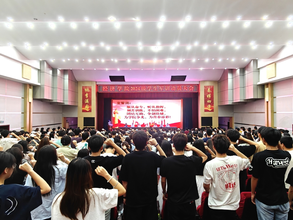 大会尾声,全体参训学生在学生代表的领誓下庄严宣誓:“服从命令,听从指挥;刻苦训练,勇攀高峰;团结互助,争创一流;为校争光,使命必达!”铿锵誓言响彻会场,彰显了经济学子迎难而上、奋勇争先的坚定信念。