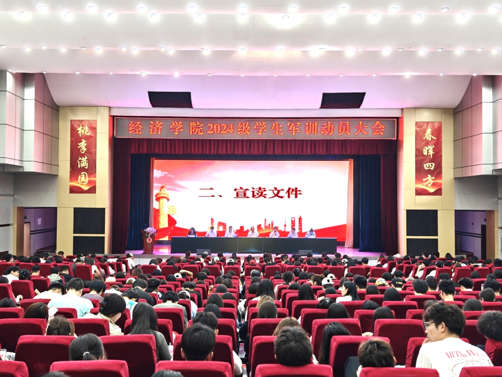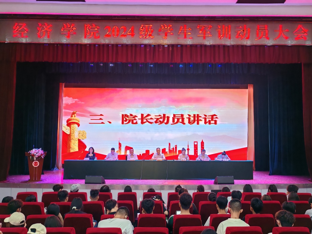 为厚植学生家国情怀、锤炼意志品质,强化组织纪律性与团队协作能力,2025年7月11日上午,经济学院2024级学生军训动员会在学术报告厅召开。经济学院院长万永坤、党委书记李互武、教学院长助理王红娟、办公室主任马晓天、2024级辅导员王荣、王佳佳,以及全体2024级学生齐聚一堂,共同开启这场淬炼青春、铸就担当的征程。会议由行政院长周欣主持。