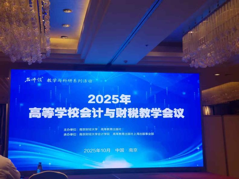 2025年10月17日至19日,由南京财经大学与高等教育出版社联合主办的2025年高等学校会计与财税教学会议在南京顺利召开。我校经济学院财政学教研室尹晋祥主任带领王玲珊、史言诺、宋荣荣三位老师参会,全程参加了主旨报告、分组研讨等会议环节,旨在精准把握财税教学前沿动态。