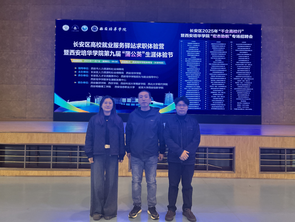 为深入贯彻落实学校关于就业的工作部署,加强我院与省外用人单位的交流合作,拓宽毕业生就业路径,提升就业质量与专业对口率。11月7日,学院党委副书记陆海峰、办公室主任宁成东、毕业班辅导员谢晓珊一行三人赴陕西西安参加西安培华学院、西安外事学院的专场招聘会,开展访企拓岗专项活动。