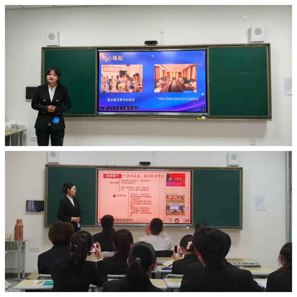 大赛采用“路演+提问”的赛制,环节紧凑、亮点纷呈。路演环节中,24位选手围绕自我认知、职业环境分析、职业目标设定、实施计划及评估调整等方面,通过PPT展示、现场阐述等形式,清晰呈现个人职业生涯规划蓝图。选手们结合经济学科特色,聚焦金融、市场营销等多个职业领域,展现出对行业发展的深刻理解和明确的职业追求。提问环节中,评委老师针对选手规划的可行性、创新性及应对职业风险的能力等方面进行精准提问,选手们从容应答、逻辑清晰,充分展现了良好的专业素养和临场应变能力。