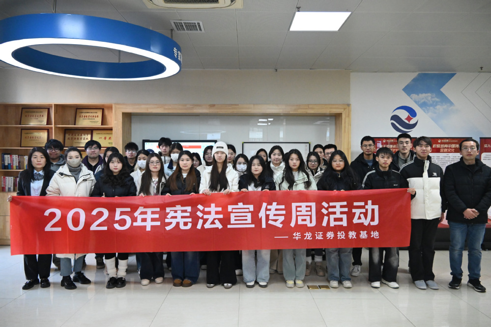 12月5日,在第八个“国家宪法宣传周”期间,经济学院组织30名学生走进华龙证券投教基地,开展了一场以“宪法与金融法治”为主题的实践活动。学院党委副书记陆海峰、辅导员王荣带队参与。