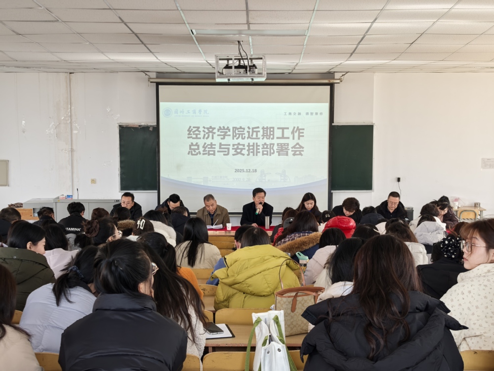 为全面复盘近期工作成效,精准部署下一阶段重点任务,夯实学院高质量发展基础,2025年12月18日13:30,经济学院在博学楼215召开近期工作总结与安排部署工作会议。会议由经济学院教学院长万永坤教授主持,全体教职工参会,围绕学院核心工作展开系统梳理与部署。