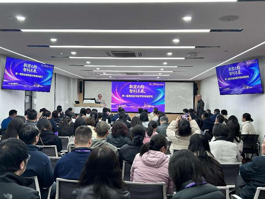 研修期间,浙江大学中国数字贸易研究院院长、长江学者马述忠教授围绕“人工智能重塑数字贸易产业未来”作专题分享,从顶层设计角度阐释了AI技术与数字贸易的融合逻辑,为参会教师明晰了数字贸易产业的未来演进方向。全国大学生数字贸易综合能力大赛秘书长易建安则详细解读了第五届大赛的AI赋能与产教融合特征,并与各赛区联络院校代表召开闭门会议,探讨如何打造国内顶尖、全球一流的数字贸易赛事,以及新文科与AI的深度结合路径。