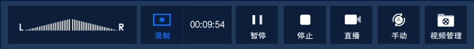 3.点击导播界面的录制按键时,按键颜色会变为蓝色,右边时间显示区,开始视频录制计时表示视频已经开始录制。