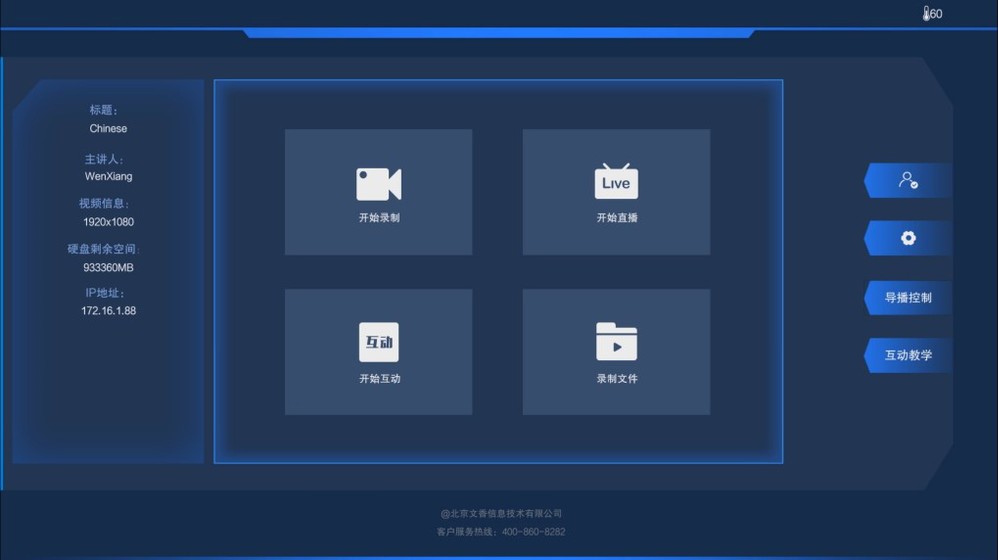 1.在录制开始与结束时可以添加相应的图片以装饰视频,片头片尾的时间可以由用户的需求自己设置,且可插入U盘更新片头片尾,可选手动插入和自动插入。