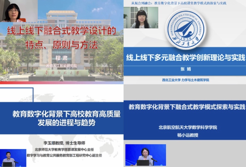 本次培训由西北工业大学、北京师范大学等专家主讲,他们围绕技术赋能课堂教学、教育数字化、教学创新等理论与实践展开,分别从融合式教学的应用与实践、教学设计的特点与方法、教学模式的理念与探索等方面作了深入讲解和实践分享。
