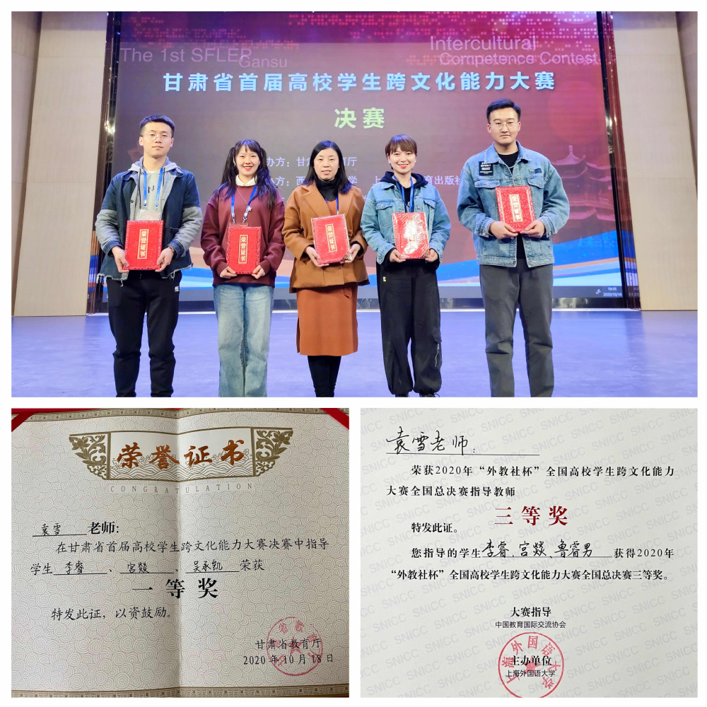 指导学生荣获甘肃省首届高校学生跨文化能力大赛一等奖;