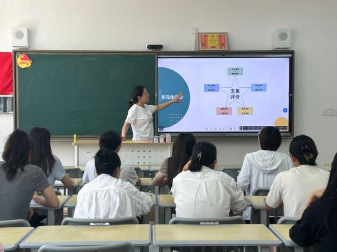 研讨会上,陈小玲老师以《教学过程中的多元化教学评价》为主题进行了分享。分享中,陈小玲强调了教学评价的重要性,对传统教学评价和现代教学评价进行了对比,强调了现代教学评价中社交媒体评价的重要性,她结合自身的教学经验,分享了提高反馈效果的策略,强调了反馈的及时性、具体性、鼓励性和多样性,这些策略不但可以用在英语学科教学中,也同样适用于跨学科领域。