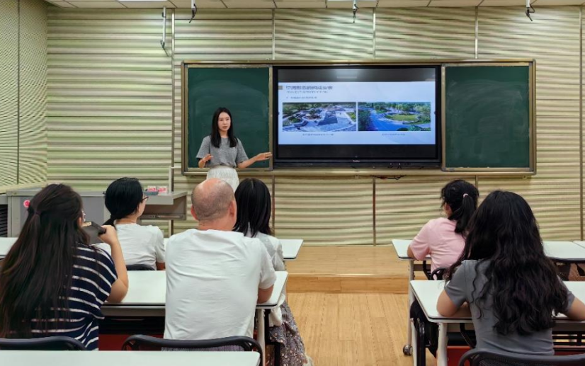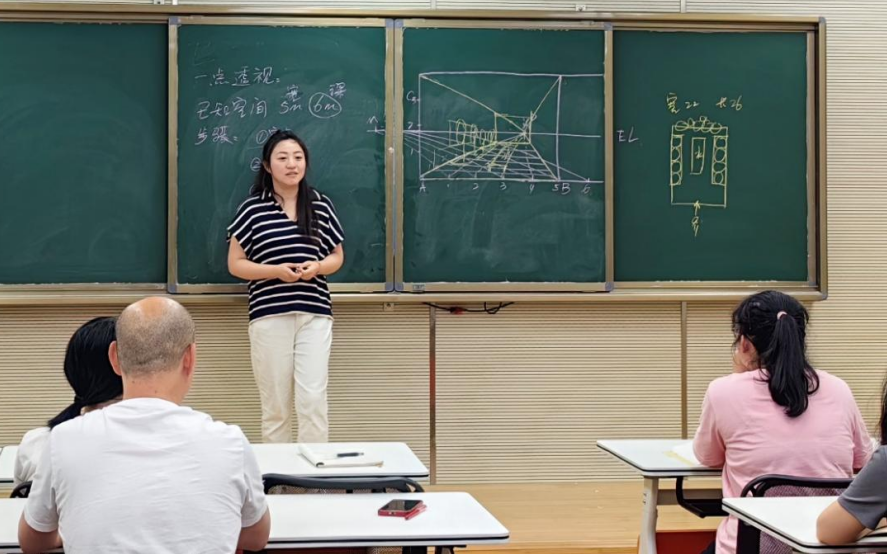 教学示范过程中,几位教师围绕教学内容设置、教学方法创新、教学环节优化等教学实施情况进行讲授。罗婧瑄老师对《环境设计效果图表现技法》(手绘)中的一点透视进行了教学示范,课程单元设计完整,授课内容丰富,通过在黑板上手绘,进行原理的解析,图文并茂,通俗易懂。马优老师讲授的内容是《景观规划设计》中的空间组织原则,根据课程特点设计教学内容,运用案例分析的方法锻炼学生对空间组织的感悟能力。范芸老师对《立体构成》中的形式美法则进行讲授,列举生活中的实例,体现了形式美法则与生活的联系。