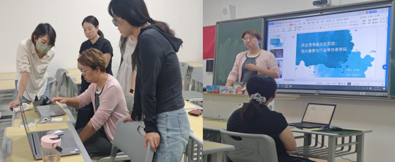 宁贵霞教授聚焦人工智能应用案例的设计合理性、数据处理方法及伦理合规性等关键环节,帮助教师厘清技术路线,增强项目应用落地的说服力。她指出:“人工智能应用案例不仅要体现技术先进性,更要紧密结合社会需求和产业场景,突出其解决实际问题的能力。”梁艳副教授则从竞赛作品的创新性、技术可行性及成果呈现逻辑等多个维度,对每位教师的参赛材料进行了细致点评,并提出具体修改建议。她强调:“竞赛作品的核心竞争力在于鲜明的问题意识、严谨的实现路径和可验证的应用价值。”