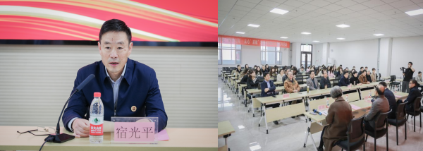 启动仪式上,教学常务副校长宿光平教授致辞。他指出青教赛是我校最具分量的教学赛事之一,不仅是展示风采、切磋技艺的平台,更是对青年教师意志力与综合能力的集中检阅。同时围绕本次竞赛,宿校长向全体参赛教师提出三点希望:一是珍惜机会,全情投入,展现扎实功底与良好状态;二是相互学习,共同进步,将所学所悟融入日常教学;三是秉持初心,勇于探索,做学生为学、为事、为人的示范。