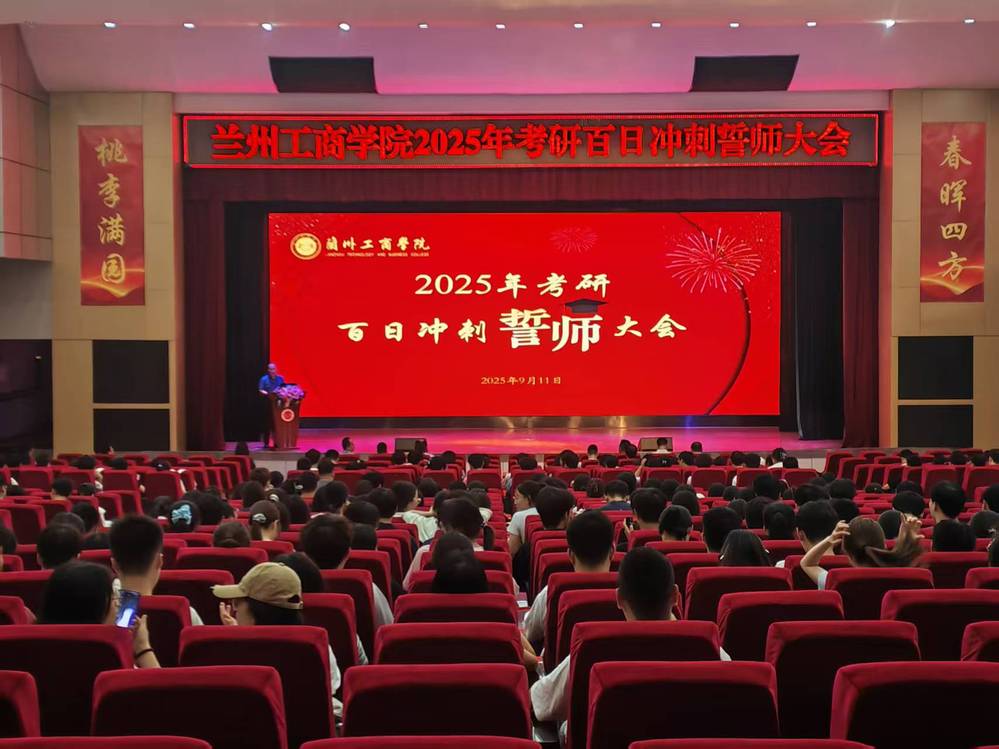在距离2026年全国硕士研究生招生考试还有100天的特殊时刻,为了进一步提振2022级意向考研学生考研信心,坚定考研意志,为2022级考研学子吹响百日冲刺最后1公里的冲锋号,2025年9月11日下午,学校在学术报告厅召开2025年考研百日冲刺誓师大会。学校教学常务副校长宿光平教授应邀出席会议并讲话,各二级学院行政院长、2022级辅导员老师及700余名考研学生参加了大会。会议由教务处处长王治和教授主持。