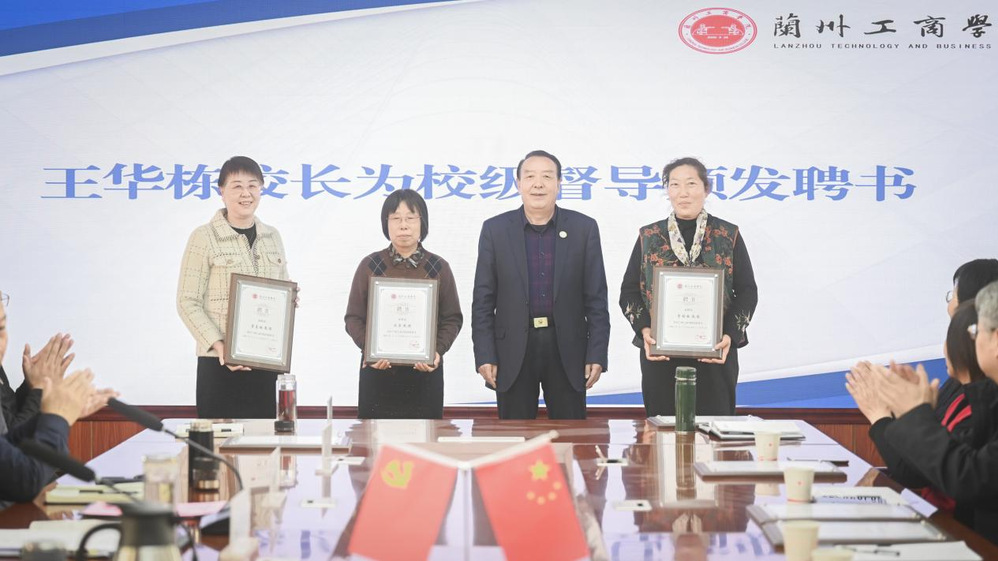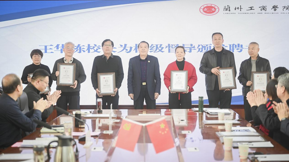 2026年3月3日下午,正值元宵佳节,兰州工商学院在行政楼第一会议室隆重召开校级督导聘任仪式暨2025-2026学年第二学期第一次督导工作例会。校长王华栋教授、常务副校长宿光平教授、副校长徐运敏、王治和,教学质量监控中心主任李宝麟,以及新一届校级教学督导委员会委员出席会议。会议由徐运敏副校长主持。