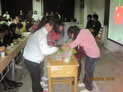 此次活动流程分为个人赛和团队赛。其中个人赛分为自我介绍与才艺展示(主持人30秒解说)、头脑风暴(通过PPT中反映生活的图片说感想)以及手艺SHOW(从生活中考验大学生的动手能力)三个环节。
