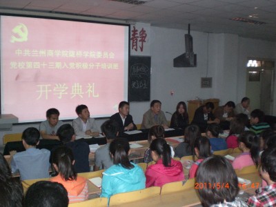 2011年5月4日,院党委主办,会计学系承办的中共兰州商学院陇桥学院第43期入党积极分子培训班在1号教学楼315教室举行开学典礼。