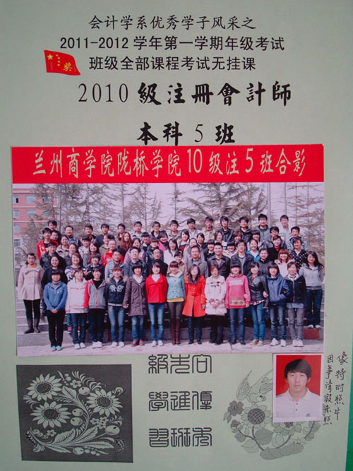 在2011-2012学年第一学期的学期考试中,会计学系学子刻苦努力,奋力拼搏,取得了良好的学习成绩,涌现出了很多品学兼优的好学生。本学期,系部从这些学生中,遴选出大一、大二、大三年级在上学期的考试中,考试成绩总分第一名、单科成绩第一名、全部课程考试成绩达到80分以上的50多名优秀学生,以及全班无挂课的优秀班级,给予通报表扬,树立为会计学系全体学生的学习楷模。对于各班级的考试总分第一名、单科第一名的优秀学生,树立为班级学生的学习楷模。